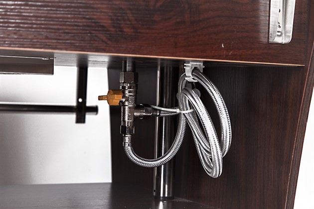 Tappkran med kulventil för enkel tömning av vattnet i vattenbadet.