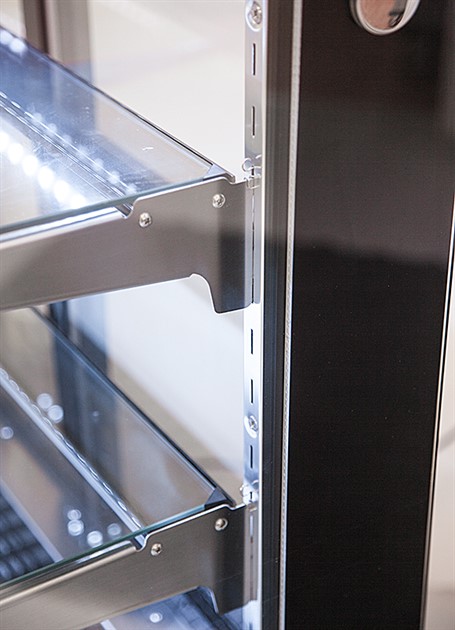 Två justerbara hyllplan med LED belysning på varje hyllplan.