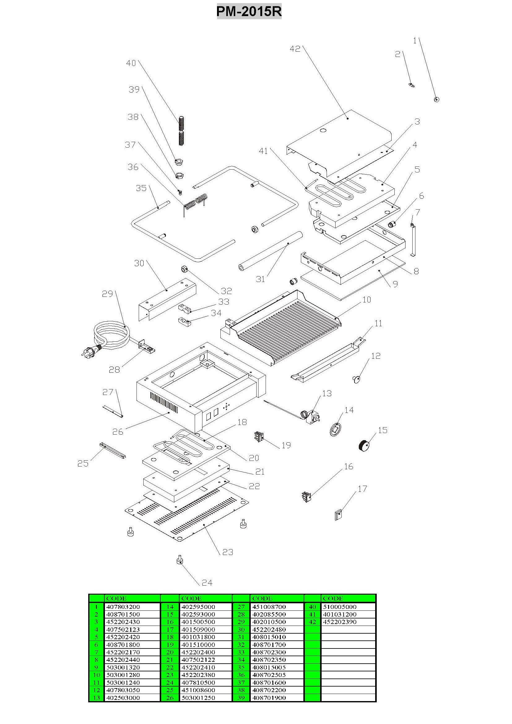 Specifikation PM-2015-R klämgrill