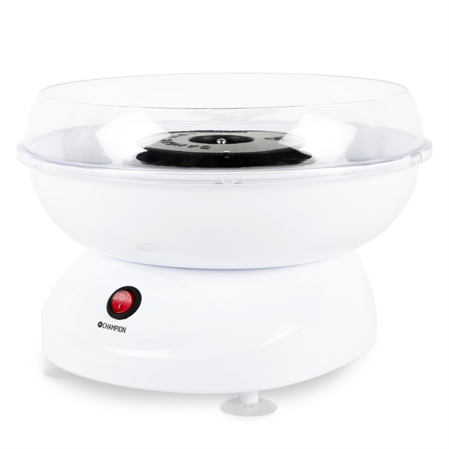 Värm upp maskinen, tillsätt socker och du har hemmagjord fluffig sockervadd. Fånga upp sockervadden ur skålen med en strut eller pinne och du är kalasets hjälte. Champions sockervaddmaskin är liten, smidig och enkel att rengöra tack vare den avtagbara skålen.